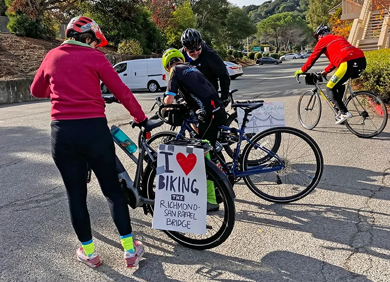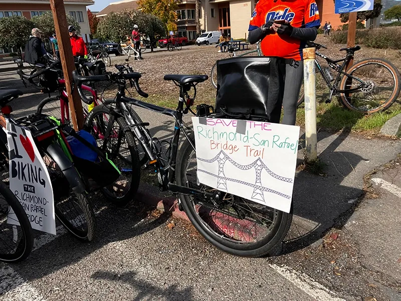 The ride, which started Saturday morning at the Richmond BART station, took cyclists across the bridge, with stops at Shoreline Park in San Rafael and the foot of the Richmond Bridge. Participants, many from local advocacy groups, used the occasion to raise awareness of the potential closure and gather signatures for a petition to keep the path open.