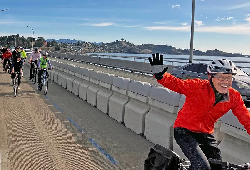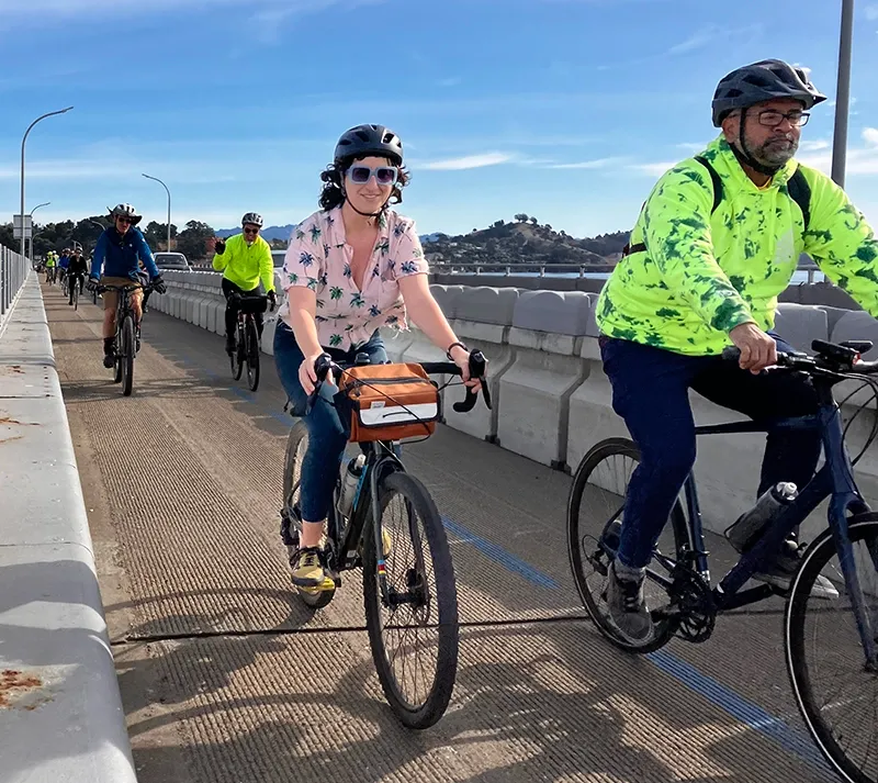 Carlos Torres, Outreach Manager for Rich City Rides, which planned the event with Bike East Bay and the Marin County Bicycle Coalition, kicked off the anniversary ride, emphasizing the importance of the bridge path for the community. “MTC is planning to shut it down four days a week. So this is why we ride together in solidarity,” Torres said.
