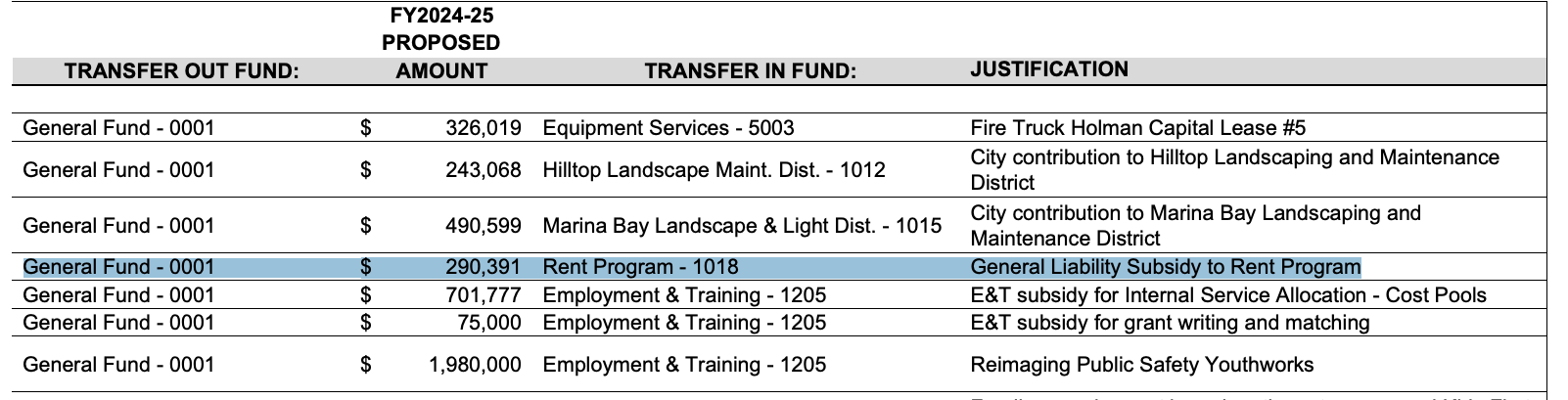 The Richmond Rent Program’s current cost pool allocation is $150,000. The allocation jumps to $290,000 in the fiscal year 2024–25 budget.