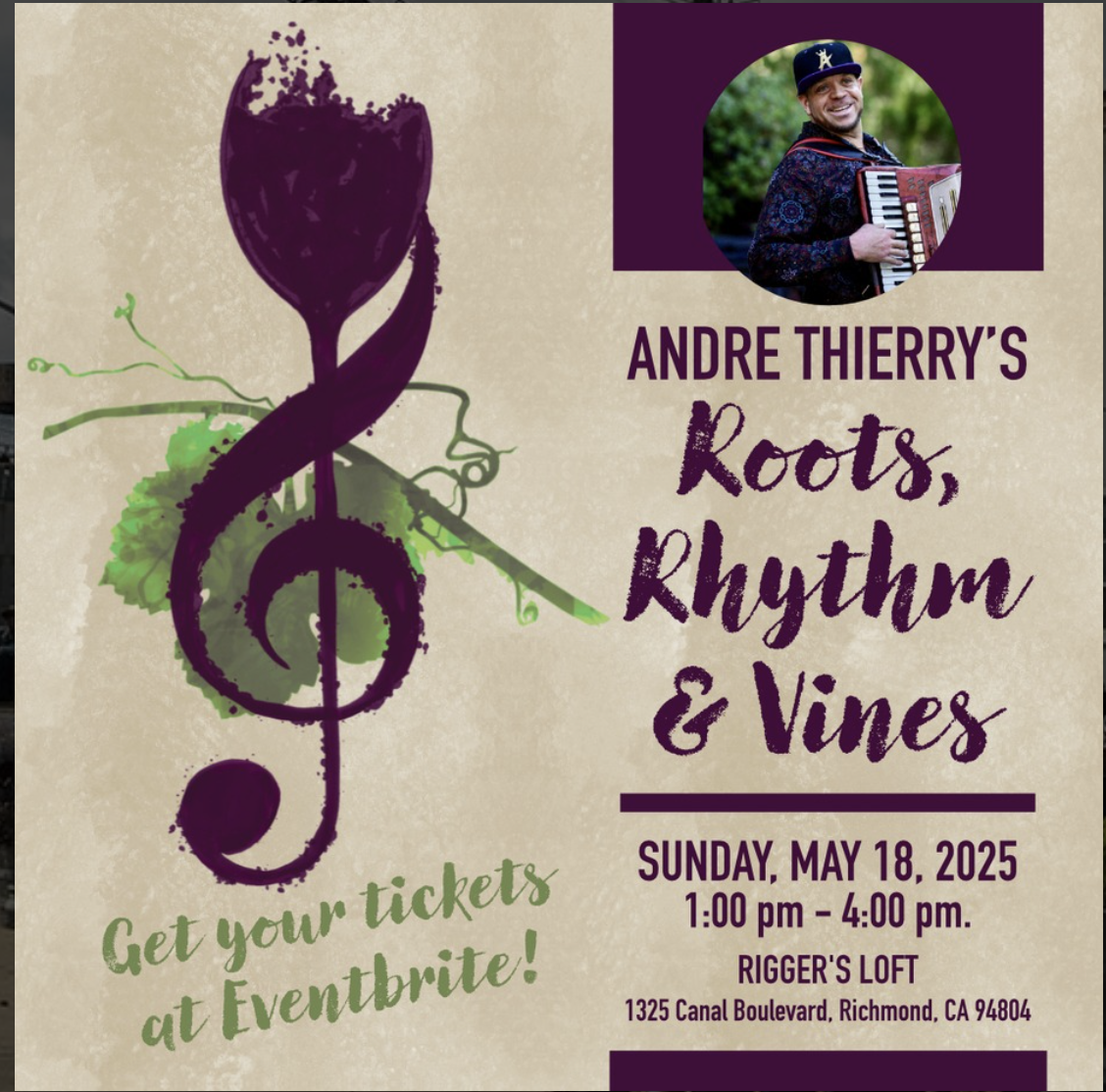 Live Music: Grammy-nominated Andre Thierry and his band honor the generations through traditional and new music influenced by French Creole LALA, Zydeco, and Accordion Soul, transcending genres with a distinct home-grown music style. Proceeds from ticket sales will support the event beneficiary, the "Are You Ready To Learn" music program for youth and their families.