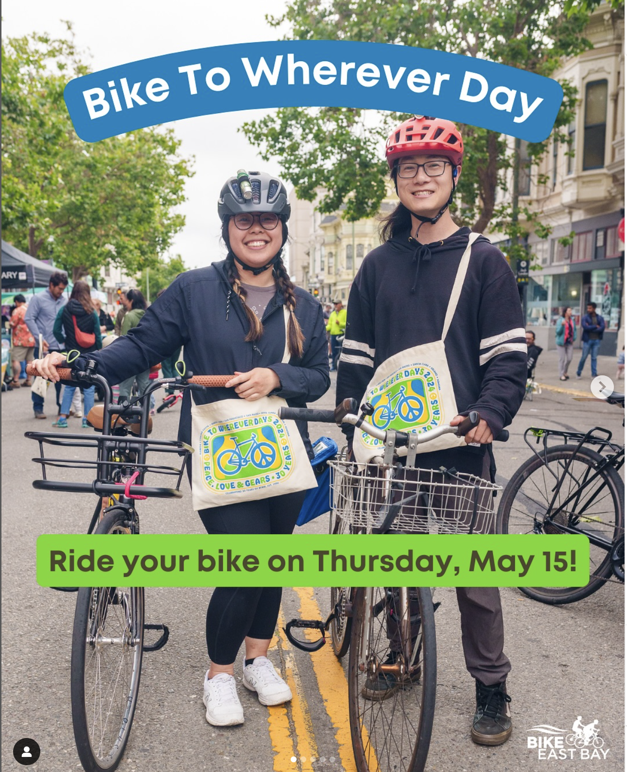 Join in on the fun by pledging to ride at BikeEastBay.org/Pledge: you’ll unlock all the details for how to snag a free BTWD tote bag, find Energizer Stations near you, and celebrate the joy of biking at a special event.