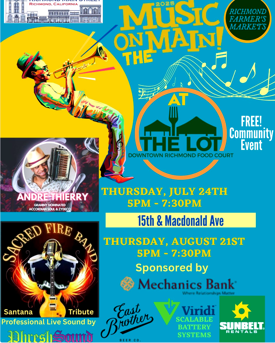 Join us on Thursday, July 24, 2025, from 5 p.m. to 7:30 p.m. at The Lot, one of Richmond’s newest outdoor spaces, as we bring the city together for an unforgettable summer evening. The lineup features the soulful sounds of André Thierry, and smooth R&B and hip-hop vibes from Phresh Sound.