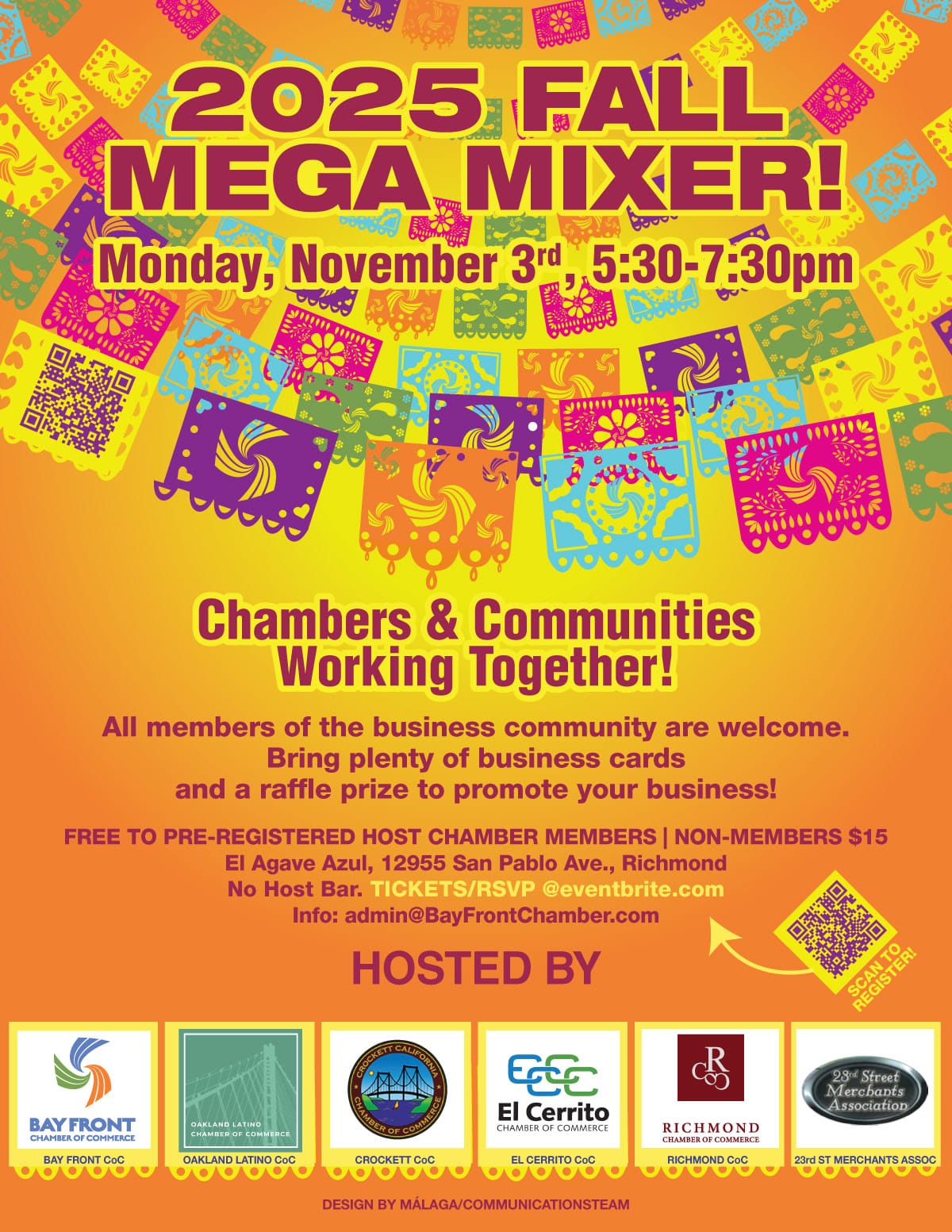 Monday, November 3, 5:30-7:30 p.m. All members of the business community are welcome. El Agave Azul 12955 San Pablo Ave, Richmond