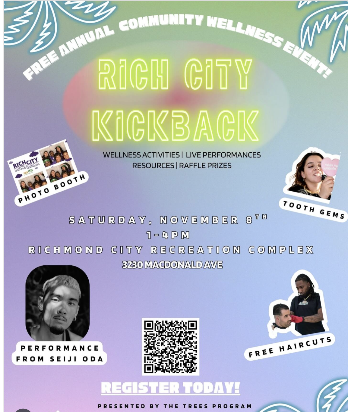 The Rich City Kickback is a fun, free event focusing on wellness and community healing to promote healthy alternatives to substance use for the Richmond community to lead healthier lives with pride and purpose.