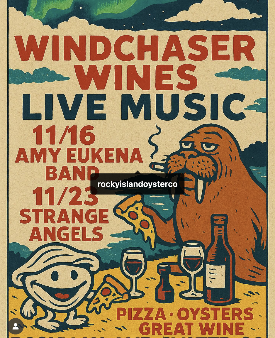 Sunday plans? How about some wine, pizzas, and or oysters while listening to some live music?@rockyislandoysterco Sundays @windchaserwineco
