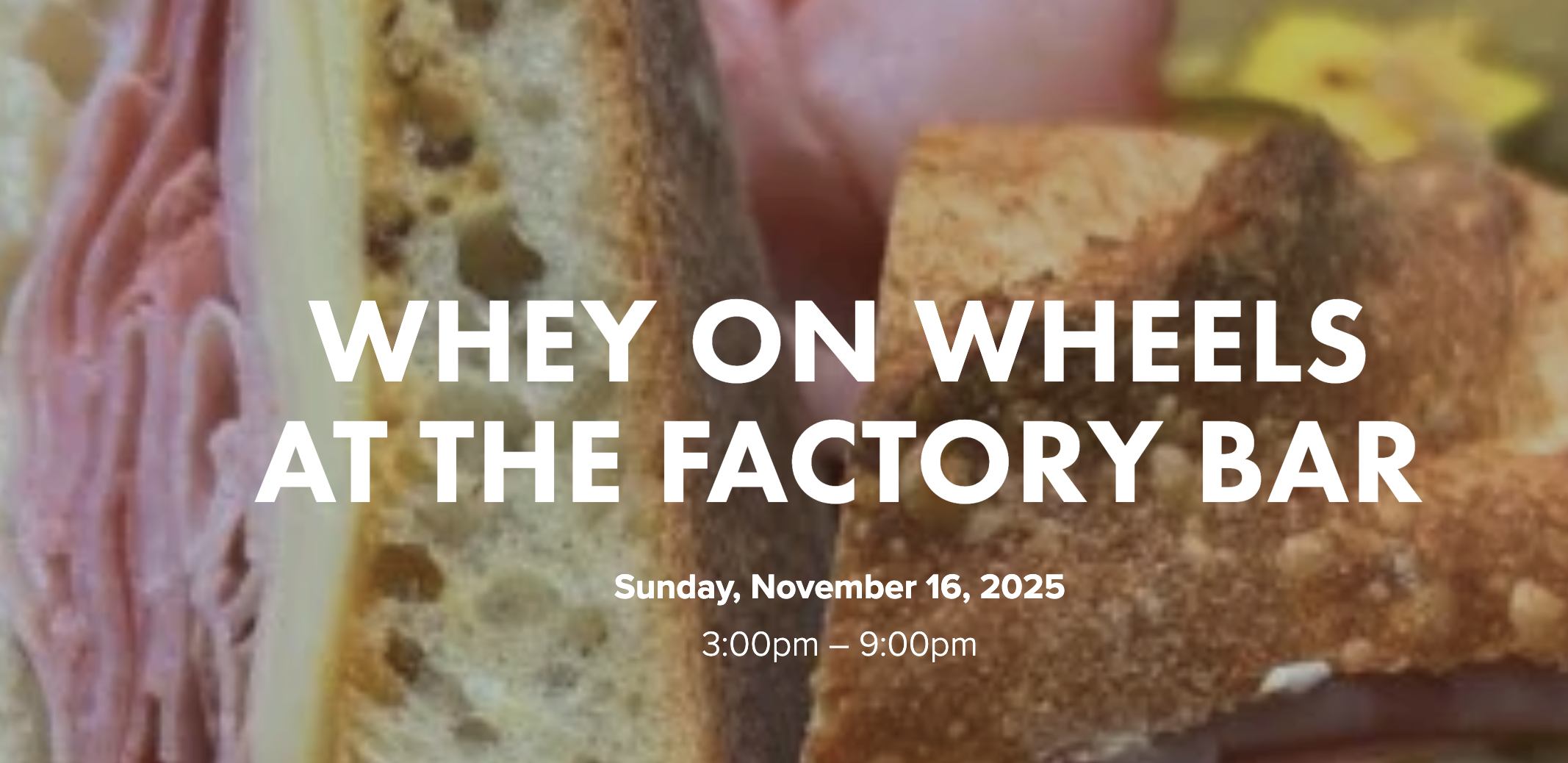 The Factory Bar is super excited to host Whey on Wheels this Sunday! They’ll be bringing their delicious cheese treats and sandwiches to Richmond! Nothing in the world pairs better than one of their amazing sandwiches and a local draft beer. Come by and see for yourself!