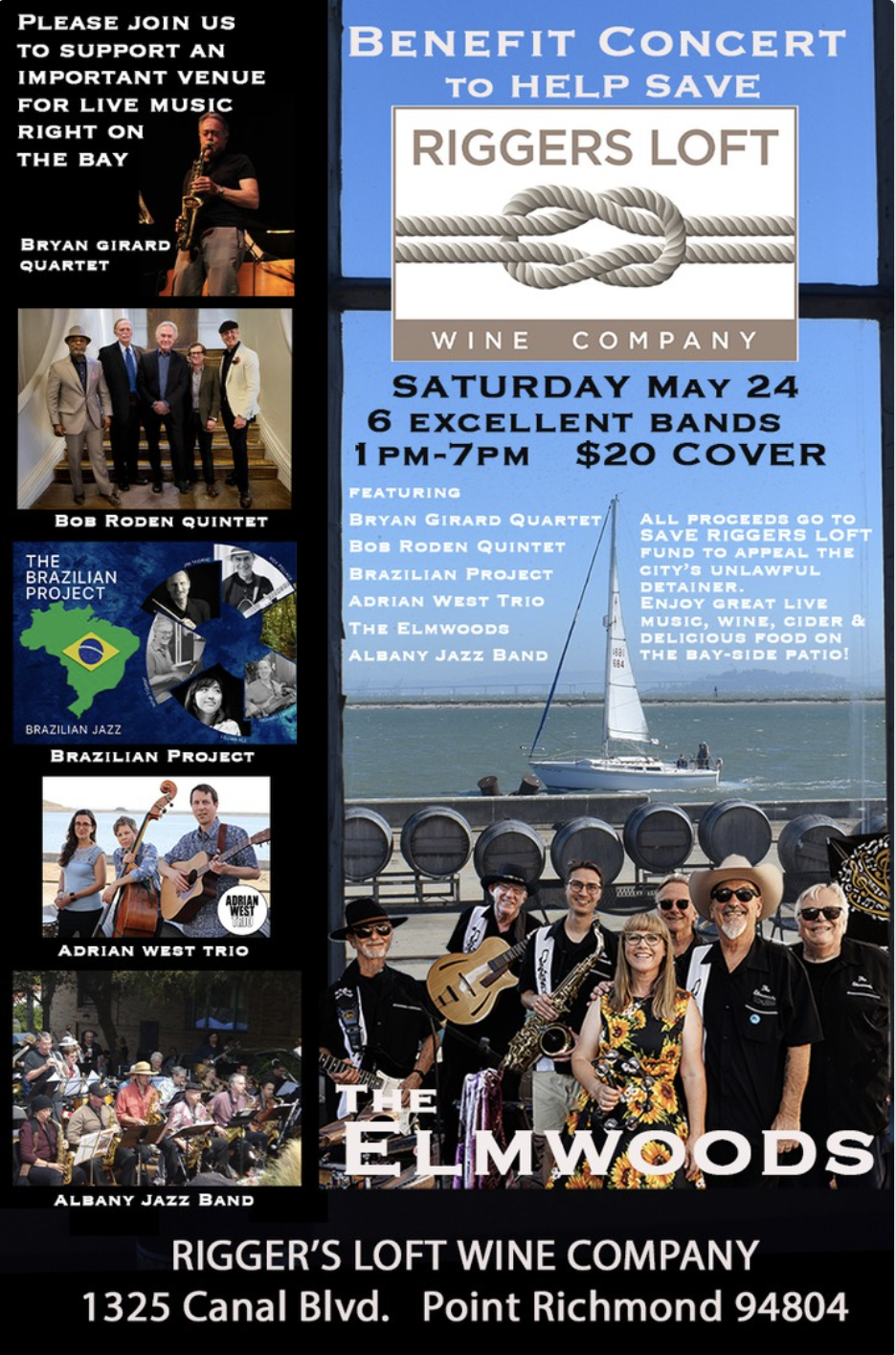Hey there, music lovers! 🎵 Swing by Riggers Loft in Richmond on May 24 from 1-7 p.m. for our BENEFIT CONCERT!! 🎸 Six fabulous bands are set to rock the stage for a cause. Good music, amazing wine, and lip-smacking food await you. 🍷🍔 Let's unite and save our beloved Loft! Be there. Be generous. #SaveRiggersLoft #BenefitConcert #MusicForACause 🎶❤️