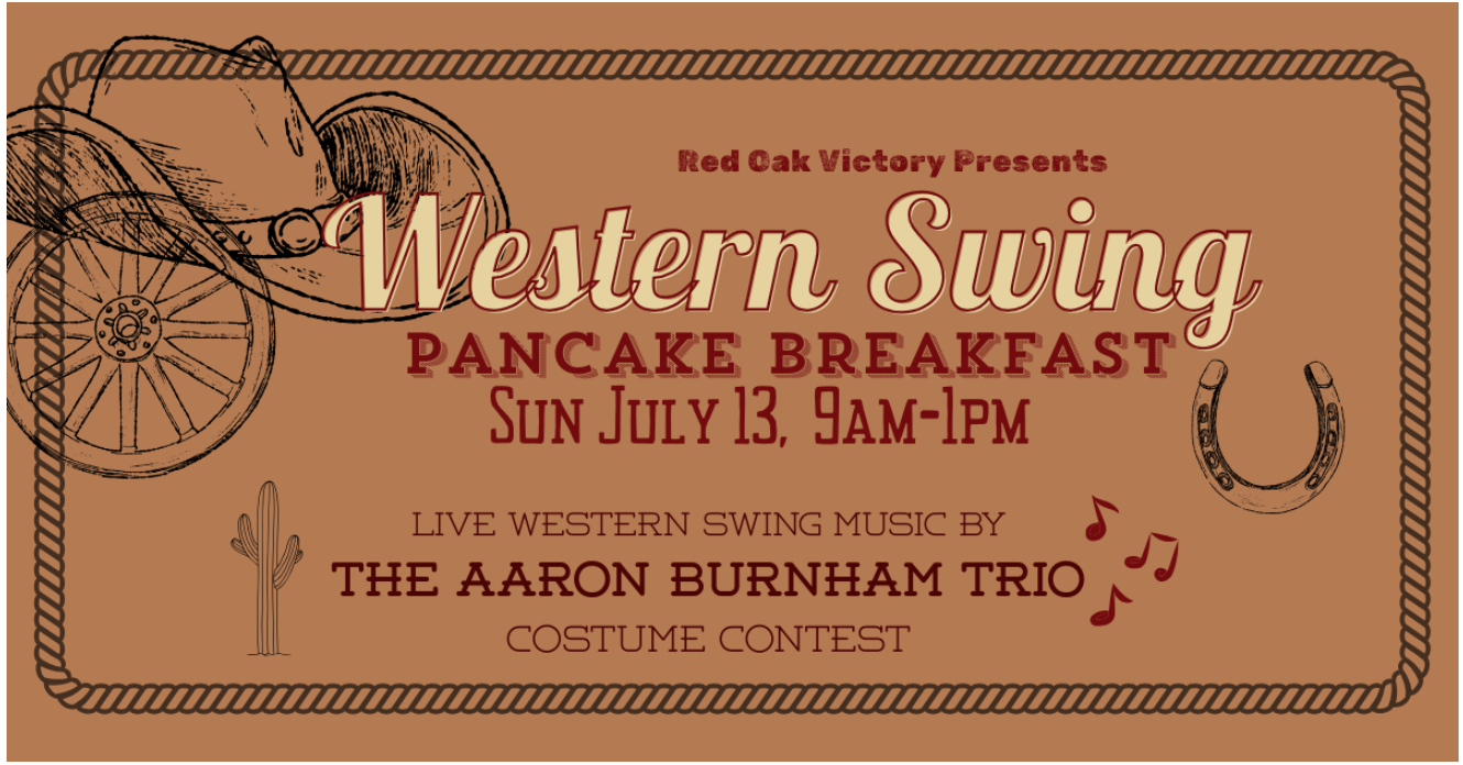 We're going to try something a little different from a musical standpoint for our July 13 Pancake Breakfast. Western Swing music was popular throughout the service life of Red Oak Victory and we're bringing it back with live music by the popular Aaron Burnham Trio. If you're not familiar with it, Western Swing is a blend of swing, country-western, and jazz and provides great music to dance to. Western Swing fans often dress the part of classic Hollywood cowboys and therefore part of our breakfast event will be a Western Swing Costume Contest! (If you need ideas just Google 1940s-50s Western Swing outfits.)