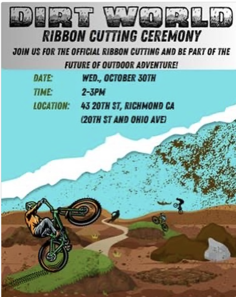 The City of Richmond is pleased to announce the Ribbon Cutting Ceremony for the DirtWorld Project on ,Wednesday, October 30 2-3 p.m. Location: 43 20th St, Richmond, CA (20th St and Ohio Ave) on the Richmond Greenway