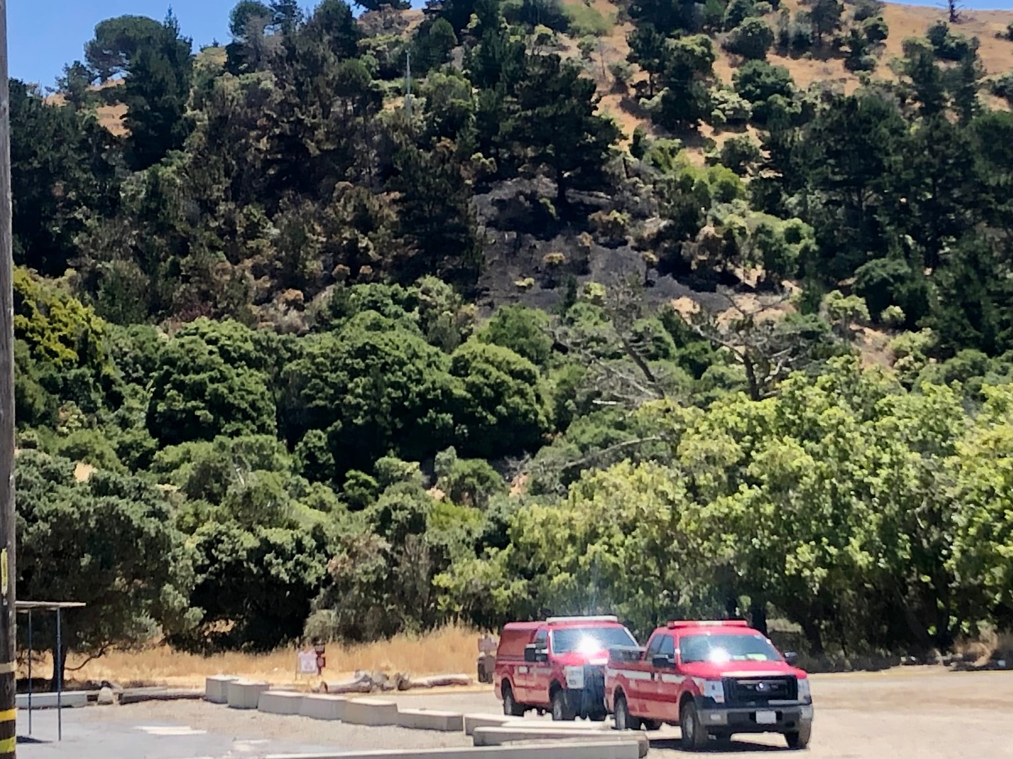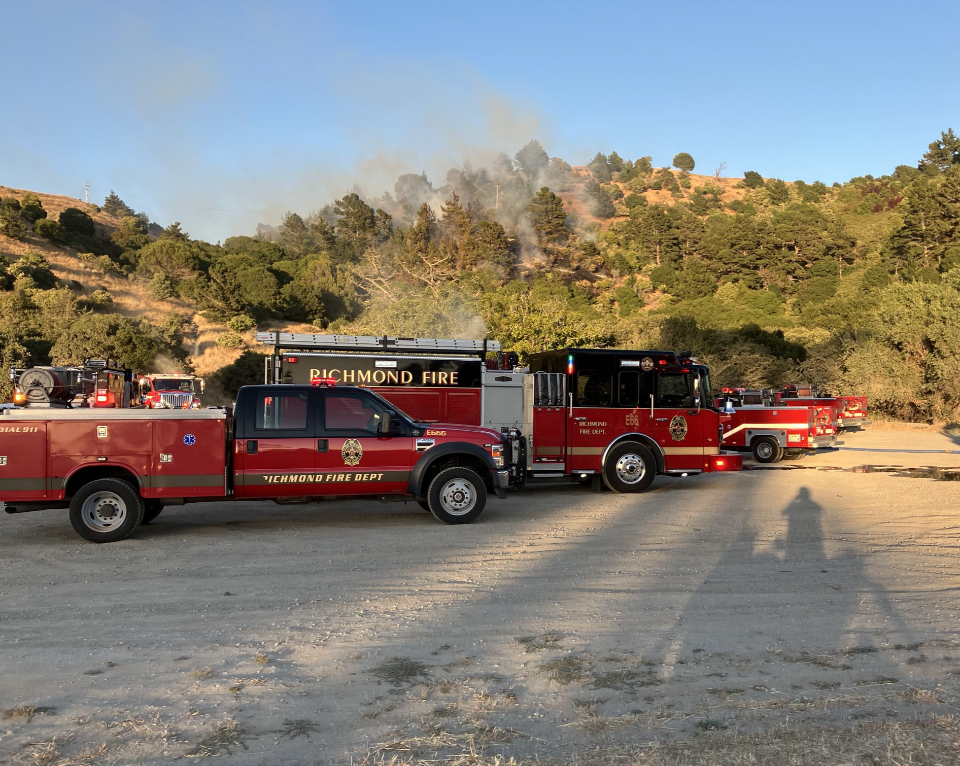 "The vegetation fire at Miller/Knox Regional Park was reported at 6:46 p.m. on Saturday, July 5. The Fire was near Nicholl Knob. East Bay Regional Park District and Richmond Fire responded," Mason said. "The fire reached a total of 4-5 acres. Hill area trails were closed but have been reopened. There is not information on cause at this time."