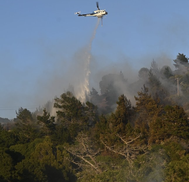 Fire crews are battling the 3-alarm blaze that started near Dornan Drive, and they are receiving additional help from the air by way of helicopters attacking the fire from above.