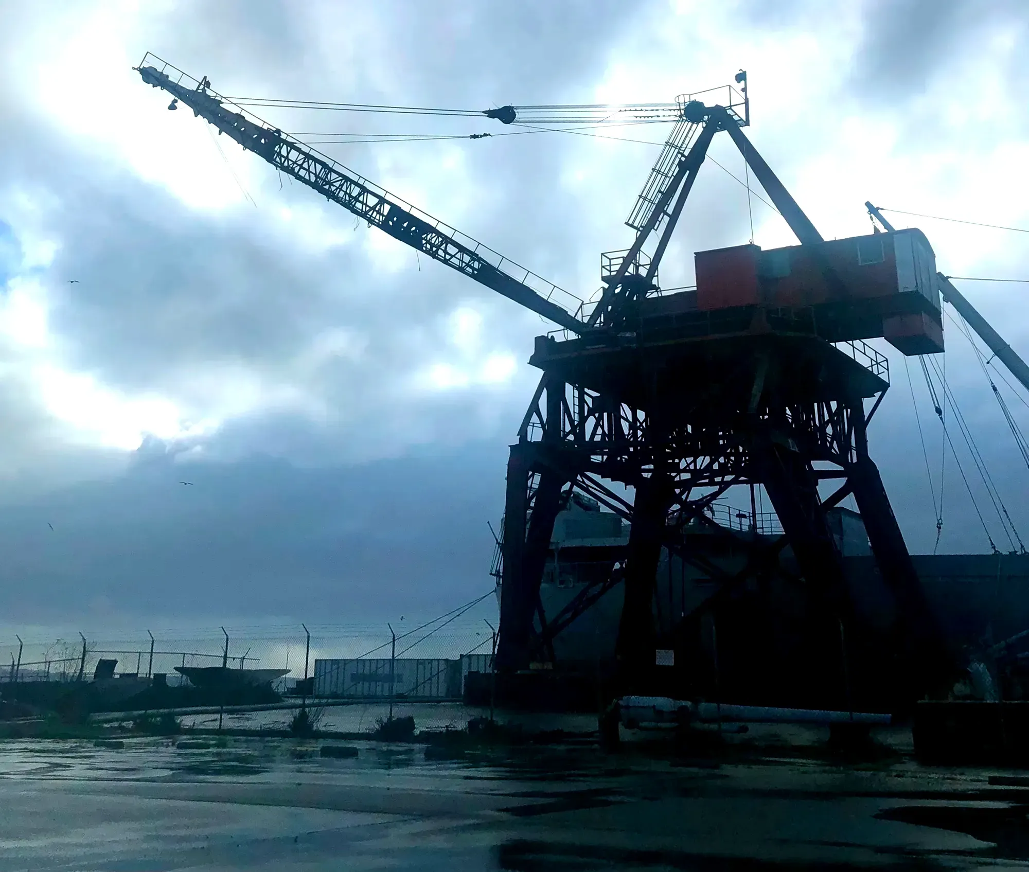 Engineering firm Moffatt & Nichol conducted inspections revealing conditions ranging from poor to serious at the terminal’s berths, graving basins, and finger piers. Critical issues include a broken support beam where the deck has settled, missing and damaged piles, pavement failures due to soil erosion, and extensive corrosion damage to concrete and steel structures. Some exterior columns at the graving basins show severe damage, likely from vessel impacts, while a historic Whirley crane exhibits significant corrosion, posing a falling hazard.