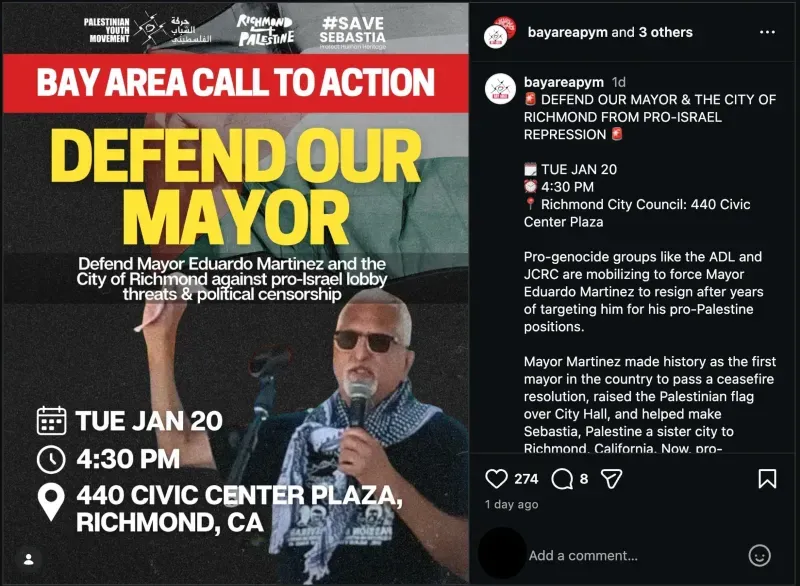 Vice Mayor Cesar Zepeda and Councilmember Jamelia Brown are sponsoring a resolution to formally censure Martinez for what they describe as “antisemitic conduct and for actions inconsistent with the duties and standards of the office.” A separate agenda item directs Martinez to participate in antisemitism training led by trainers recommended by Temple Beth Hillel leadership and issue a public apology at a council meeting and in a local newspaper.