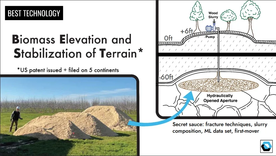 This approach is similar to academic research performed at Clemson University under the name Carbon SIRGE (Solid Injection to Raise Ground Elevation). A 2023 field study, led by Clemson researchers, demonstrated the technique’s feasibility by injecting a sawdust slurry underground.