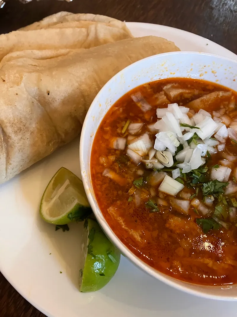 But that’s not all — Taqueria Chavinda invites you back on the weekends for menudo, providing a front-row seat on how it is prepared. The handmade tortillas are pressed and cooked to order right before you as the tripe is chopped and combined with a rich, red broth.
