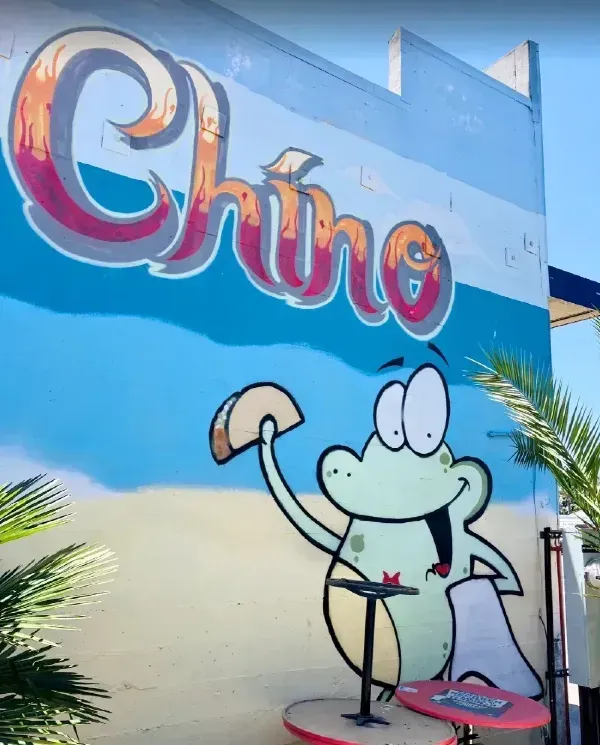 Behind the metal fence sits a large covered patio filled with tables and chairs, soccer on television screens. Food and drinks come from Tacos El Chino food trucks. Even though you are outside, with music playing, you are worlds away from busy 23rd Street.