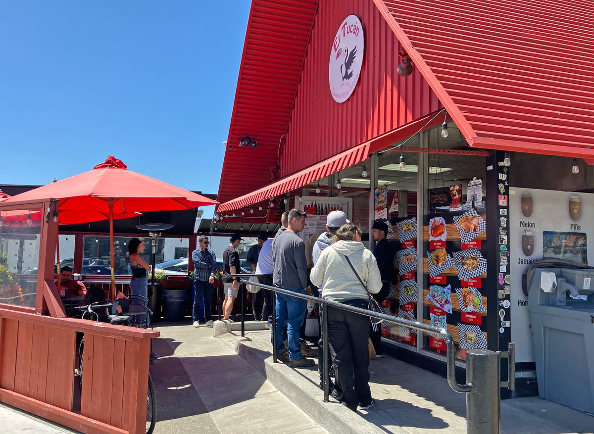 It was just after noon, and we were hungry. We made a couple of passes on a relatively empty 23rd Street. We weren’t seeing large groups gathering for food, our usual tipoff for an excellent place to eat. We stopped when we saw a group heading into the Tacos El Chino compound at Humphrey Avenue. This is the taqueria with the frog logo.