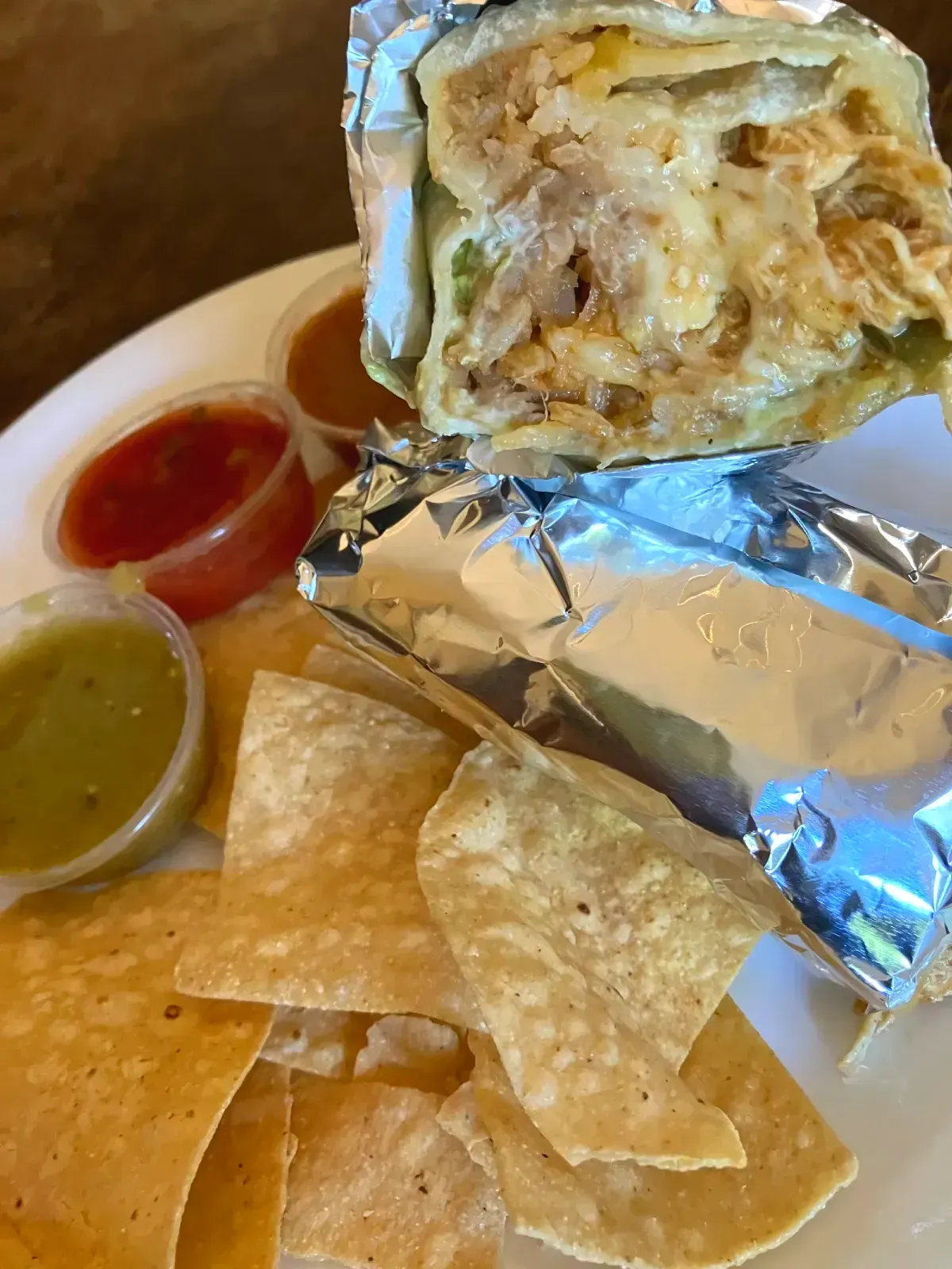 The portions are generous and come with chips and salsa. We were able to finish this burrito and were not hungry.