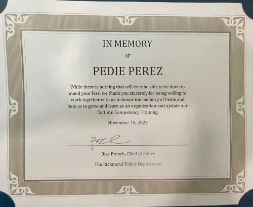 Last September, the Richmond City Council honored Perez by declaring September 14 a day of remembrance for him, providing some sense of support for his family. Following the event, the Perez family said they were encouraged to know that police officers would be more aligned with their cause.