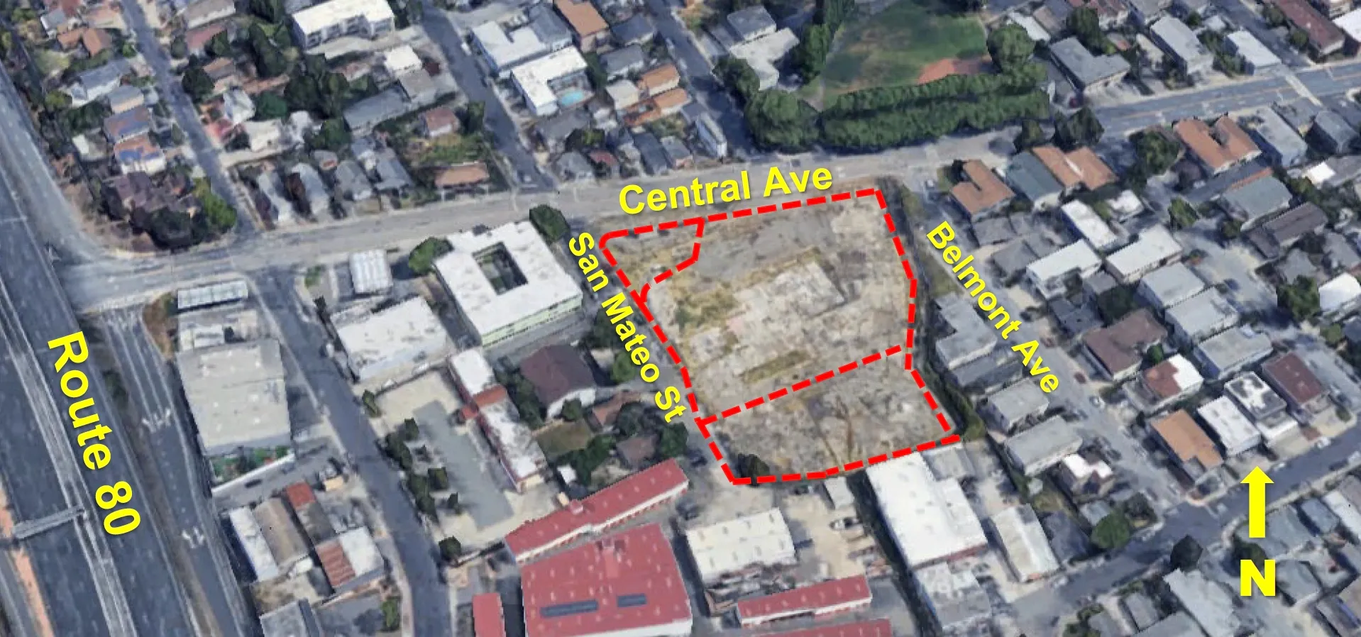 The site sits within a half-mile of the El Cerrito Plaza BART station and is near the Pacific East Mall, Costco, and other commercial developments. City staff note the location is ideal for transit-oriented development.