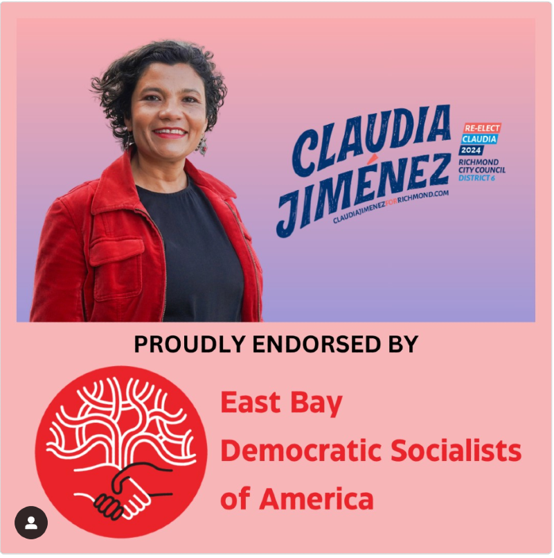 Councilmember Melvin Willis and Vice Mayor Claudia Jimenez, who are running for reelection to the Richmond City Council, have received endorsements from the East Bay Democratic Socialists of America.