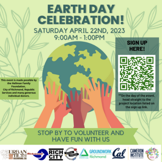 Urban Tilth, City of Richmond, Rich City Rides, Moving Forward, GroundWork, Cal Cameron Institute, and Building Blocks for Kids are inviting the Richmond Community to celebrate the honors and achievements of the environmental movement and raise awareness of the need to protect Earth’s natural resources. This year’s Earth Day Celebration will be Saturday, April 22nd, from 9:00 AM to 1:00 PM. Volunteer projects will be happening in three different locations: 1. 250 S. 13th Street (Nystrom Village Parking lot) 2. 15th St. at the Richmond Greenway Trail 3. Unity Park 1605 Ohio Ave Learn new ways to have a sustainable life and take better care of planet Earth, through fun activities such as outdoor painting experience, gardening activities, mural painting, park/garden beautification, games, speakers, FREE blood pressure screening, bike-powered smoothies, petting zoo, and other fun activities and booths. To sign up, please visit https://www.signupgenius.com/go/10c094da8ac28aaf4c61- earth#/, and for more information, contact Greenway@urbantilth.org.