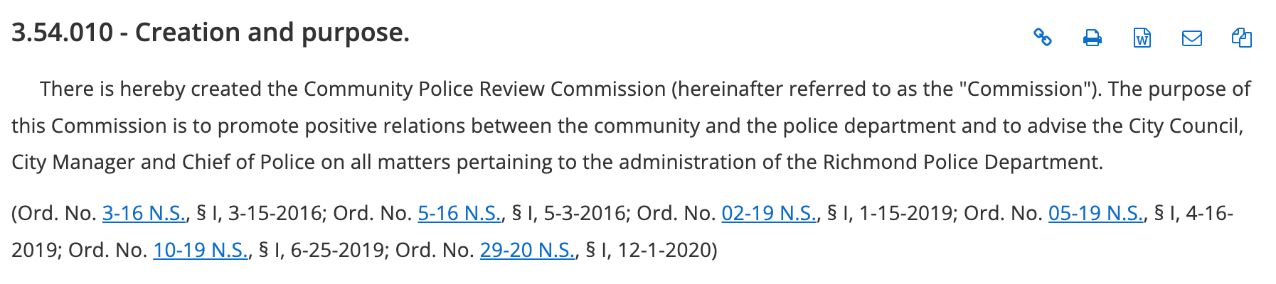Richmond's Community Police Review Commission is seeking to redefine its mission, recommending amendments to its founding ordinance that commissioners say would sharpen the group's focus on independent oversight of the city's police department.