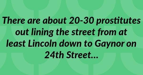 We now know why residents were reporting 20-30 sex workers lining 24th Street on social media last week.